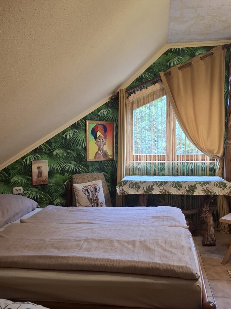 Meleg színek, egzotikus minták és a szavanna hangulata. Az afrikai szoba életörömöt és kalandvágyat áraszt – különleges élmény azoknak, akik szeretik a karakteres, természetközeli enteriőröket.